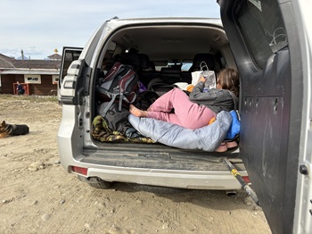 8時にガイダイГайдайさんが迎えに来るからと、前日から言われていた。彼の車は大きくて上等だから荷物もたくさん詰め、5人は楽々乗れるとニキータが言っていた。(後で本人から聞き出したことは、ランクルのプラド、ロシアで新車で買ったそうだ。) 来日前、ニキータからバイカルの他はどこへ行きたいかという問いに、できたら「アルシャンという鉱泉場で有名」なところに行きたいと答えた。その保養地の名はイルクーツク人からよく聞いていたのだ。しかしそこはイルクーツク州ではなくブリヤート共和国だ。だからかなり遠くて、日帰りはつまらない。誰かが、私たちを案内してくれるかも知れないが、(ニキータ流では私に義理がありそうな)知り合いに当たってみるという返事だった。そして、電話で連絡がついたのか、私に「1泊でアルシャンに行きたいか、春に金沢に来たことのあるガイダイさんが招待している」と告げた。イヴァン・ガイダイさんと妻のリュドミーラ・イヴァニイИванийさんが、金沢にきた時、近郊を案内してあげた。そのとき一緒に白山ホワイト・ロード入り口付近の中宮温泉にある旅館の湯につかったことがある。 ニキータのやり方は日本へ行きたい知り合いを募り、その一部の人の日本(金沢)観光を私に任せる。私がイルクーツクに来たときは、それらの人に働きかけ、私の観光を任せる。と言う理にかなったものだ。私がイルクーツクに来ていると、どこかから知った彼らが自発的に申し出ることもある。ニキータによるとガイダルさんは後者だった。彼は、イルクーツク市から70キロも離れたウソリエ・シビリスク近くのマリタ村Мальтаに住んでいて、いくつかの商店のオーナーだそうだ。村は3000人ほどだが多分唯一の商店で、何でも売っている。 そういえば、白山方面に車を走らせていたとき、リョドミラさんは、自分たちのことを話していた。マリタ村とは20世紀前半に後期旧石器時代のマリタ遺跡(2万年から2万5千年前)が発掘された。大抵の考古学の教科書には載っている『マリタのヴィーナス』は、エルミタージュ美術館にある。つまり遺跡の発掘現場は残っていないし、有名な発掘物だけは国立博物館などにある、と言うわけだ。2万年以上前の石器人がどんなところに住んでいたのか、場所だけでも見に行きたくもあるが。 日本の縄文時代の遺跡を示されたロシア人(イルクーツク人)は自分たちのところには、もっと時代が遡った石器時代の遺跡があると言うが、マリタの石器時代人は絶対にロシア人の祖先ではない。 マリタ村はイルクーツクから70キロも離れているから、8時に彼らが到着できなかったのも無理はない。ガイダイさんはそれほどイルクーツクの地理を知らないのでスヘ・バートル街11をすぐには見つけられなかったのだろう。しかし、車のナビと、ニキータとの携帯電話のおかげで8時30分頃には、彼らが到着。私たちも後部座席に乗り込めた。驚いたけれども納得したことには、後部座席の後ろの荷物を置くスペース(プラドだから広い)に彼らの娘のアーニャが乗っていた。クッションにくるまって居心地も良さそうだった。 ガイダイさんはマーシャ・マレヴァーノヴァさん宅へも、ナビを見ながらやっとたどり着き、マーシャを乗せた。ニキータが言うには、アルシャンではバーベキューもするから助手が必要だとか。彼女は英語をしゃべるから、孫娘とも話ができる。(実際は。この2日間、マーシャはロシア語しかしゃべらなかったし、孫娘は日本語しかしゃべらなかった。母語以外をしゃべらなくても周りと通じるときは母語しかしゃべらないものだ) マーシャを乗せると車はイルクーツク市を出て連邦道R258別名『バイカル』(*)で100キロも南下すると、バイカルの南岸のクルトゥックКултук町郊外に出る(地図)。クルトゥック町はバイカル湖の最南岸にあって、湖岸にはフォト・スポット場もある。そこで、アーニャもトランクから這い出して、家から持ってきた魔法瓶のお茶を飲んで一休みして、出発したのは11時過ぎだ。 (*)ロシア・シベリアの連邦道、ノヴォシビルスクからイルクーツクまでの連邦道R255(別名『シベリア』)はイルクーツクのバイパスで終わり、イルクーツクからはR258(別名『バイカル』)となってチタ市まで行って、チタ市からはR297(別名『アムール』)となり、ハバロフスクまで行き、そこからはA370(別名『ウスーリー』)となって、ウラジヴォストックで終わる)。ロシアを東西につなげる主要道で鉄道もほぼ並行して走っている |