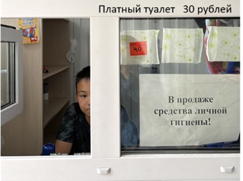 ブリヤート共和国はモンゴルとの国境からバイカル湖の南岸にせまり東岸に沿って、人口希薄で山岳の北部に広がる。ロシア連邦内で15番目の面積、人口は53番目だ。共和国は国土の8割以上がバイカル湖北部の(上記のように)バイカル山脈やヤブロノヴイ山脈などの山岳地帯(人口希薄)に位置している。バイカルに流れ込むセレンガ川沿いの首都ウラン・ウデが43万人(うちロシア人55%)、バイカル湖最北のセーヴェロバイカリスクСеверобайкальск(バム鉄道拠点、80%以上がロシア人)市が2万5千人、グシノアジョールスクГусиноозёрск(かつて大規模な火力発電所があった、人口75%はロシア人)の他、数千人の市町村しかない。 イルクーツク人に人気のあるのはトゥンキンスキー国立公園だ。東サヤン山脈の東端トゥンキンスキー・ゴリツィТункинские гольцы(ゴリツィというのはголый『裸の・禿げた』からの意)の南麓を流れるイルクート川(*)でできたトゥンキンスカヤ盆地(峡谷)付近が国立公園となっている。盆地は長さ190キロ幅25キロほどだ。盆地の南北の山々も国立公園に含まれる。タイガの山々に囲まれ鉱泉・温泉が多くて、ブリヤート文化が残っているトゥンキンスキー国立公園は1991年に設定された。 *イルクート川はモンゴルとの国境のブリヤート側の山地(1875m)から東北東へ448キロ流れアンガラ川に合流する、合流地点にできたのがシベリア征服コサック隊の柵で、川の名からイルクーツク柵といい、後にイルクーツク市になったのだ。ちなみに同じような地点からイルクート川の北を316キロ流れ、アンガルスク市でアンガラ川に合流するキトイ川Китойや、ずっと北に630キロも流れ、アンガラ川をせき止めてできたブラーツク湖に注ぎ込むオカ川などの源流地点は同じような場所にある。 このイルクート川が流れる谷間に連邦道A333が通り、私たちはここを50キロほど行ったジェムチュック村近くの広場で車を止める。まだアルシャンではない。ガイダイさんが前にも来たことがある温泉村だ。アーニャもバックドアから這い出て、みんなで広場に面したカフェの一つに向かう。私たちはサラダとボルシチを注文したが、ガイダルさんはみんなに肉汁入り大型餃子(ブーザбууза)を注文した。モンゴル人(もちろんブリヤート人だ、彼らはほぼ同じ民族だ)の少年ウェイターたちが働いていた。外のテーブルに座って食べていると人懐こい野良犬がくりくりとした目を光らせ、しっぽを振って離れない。やがて大きな犬が来るとその犬は黙って去っていった。私たちはどの犬にも何もやらなかったが、ここの犬の世界はそれなりに厳しいのだ。食事が終わると、有料の野外温泉小屋に向かう。9歳のアーニャと孫娘(18歳)はすっかり仲良しになって手をつないでいる。同じ英語を話すロシア人マーシャ(26歳)は大人すぎるとみたのかな。 温泉小屋のチケットのもぎりは警察官のような男性だった。スリッパのない孫娘にマーシャアが使い捨てスリッパを売店から買ってくれた。男女別更衣室で水着に着替える。と言っても私は水着を持ってきていないので、ガイダルさんが大きなTシャツを貸してくれたのだ。マーシャの予備の水着は孫娘が着けた。 野外の天蓋の下にある温泉プールは深い大人用と浅めの子供用があるが、水着を着ているから男女の区別はない。水中へ下りる階段はつるつるで滑りやすい。降りて立ってみると底は砂地だった。この温泉プールは水替えをしたり浴槽を洗ったりはしないと思う。40度以上の温泉水を絶えずパイプでたれ流し込むだけだ。だから温泉の成分が壁や階段や手すりにこびりついて表面がぬるぬるになっているのだ。浴客はロシア人も多かった。大人用浴槽は私にはぎりぎりの深さで怖かったので、隣の子供用に移る。ここでは子供が飛び込みをやっていた。隅のほうにモンゴル顔のおばあさんが浸かっている。 ネットによると温泉の湯は『弱放射性で、冬でも37度から55度の温度。ミネラルが豊富で、 シリコン、フッ素、臭素、ラドンなどを含み、筋骨格系、皮膚、神経系および呼吸器の疾患の治療が期待できる。観光客は、水が薄緑色であることに気づきます。 日陰と心地よい香り、そしてプールからの蒸気が雰囲気を作り出します』とある。 温泉では浸かっているほかは何もすることはない。体を洗う場所も真水のシャワーもないから、更衣室での着替えも入れて1時間ぐらいで出てきた。先に出たガイダルさんとリューダさんは日本製とよく似たマッサージチェアーに座っている。上の壁には『10分100ルーブル』などと書いた紙があってある。横のフットマッサージ機数台は間違いなく日本製で、日本語で『フットFootキュット』と書いてある。こんなところで意外な日本製を見たものだ。 私はマッサージより、外に出て『モンゴル市場』の屋台の品々の方が興味深かった。たっぷりの蜜に漬かった巣蜜が500ルーブルで売っていたので購入。ロシアの田舎で巣蜜を見つけると、そ