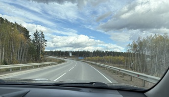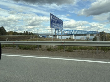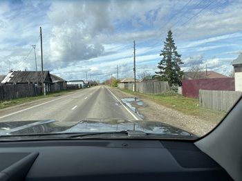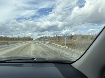 2年前クラスノヤルスクに来たとき、エニセイスク市へも行った。途中の道でヴィソカゴールスキーと言う2024年夏に開通したばかりの新しい橋があった。この橋を渡ってエニセイ右岸(アンガラ川北岸でもある)に出て356キロ行くとセーヴェロ・エニセイスキィСеверо-Енисейский町に出られる。行ってみたいと、話していた。その後のメールでも、その橋を渡ってタイガの右岸を奥深く行く話をよくしたものだ。だからこの日はリューダさんが私の長年(たった2年)の願いを叶えてくれることになっていた。356キロはむりだろうが、せめて10キロほどはと思っていた。それで早朝8時過ぎには家を出た。コンビニによってコービーを飲みヨーグルトを買った。 アリーナさんも付き合ってくれる。後部座席に孫娘と一緒に座ってくれれば、英語で話題も弾むかと期待したが、二人とも何を話していいかわからなかったらしい。孫娘が質問してもわからないという答えだったとか。 クラスノヤルスクからエニセイの左岸をまっすぐ北上する地方道『04K-044エニセイ街道』は私の大好きなコースだ。シベリアのタイガの中を行く。時々エニセイ川が見える。いくつも村を通り過ぎる。標識に書かれている地名はみんな懐かしい。何年も前にランチを食べたウスチ・トゥングースカ村も通り過ぎた。リューダさんは夏に友達と1泊でここへ行ってきたとか。 12時過ぎ、クラスノヤルスクから約200キロのアバルコーヴォ Абалаково村を過ぎると、ついに青く塗った橋が見えてきた。2年前はこの橋を渡ったが、渡ったところで引き返してきた。今回はセーヴェロ・エニセイスキィまではいけないにしても、数キロは行ってみよう。ヴィサコゴールスキィ村は10キロとあるから、そこへ行くか。詳細地図の大好きな私は、なぜこの橋がヴィサコゴールスキィ橋と名づけられたのか、知っている。右岸に寒村ヴィサコゴールスキィ(『高い山』の意)村があり、橋が架かっているところから最も近い集落だからだ。もっと景気のいい名前にすればよかったのに。 帰国後、最近の地図を見ると、ヴィサコゴールスキー村からエピシノ村までの道路整備が進行中とある。エピシノは橋から70キロほど右岸に沿って川下へ行った村だ。新しい橋からそこまで川岸の4つの寒村を通る古い道があるが、現在、通年通れる広い道に工事中だ。(一部は完成)。 『北のほとんどすべての道路は、アスファルト舗装はしてない。アスファルトは、シベリアのタイガ・ルートが主に対象としている大きな温度変化や大型トラックの重量に耐えることができないからだ』。しかし、夏場、沼地にもならない堅い道路(シベリアは永久凍土なので表面が溶けると泥沼化する)は産業に不可欠なのだろう。橋は『人口はまばらだが森林と鉱物が豊富なエニセイ川右岸の交通アクセスを改善するための作業の強化に弾みをつけました』とサイトにはある。アンガラ川北岸、エニセイ川右岸は昔から金の鉱山があるところだ。セーヴェロ・エニセイスキィ町もその一つだが、奥深いタイガの中にあり、交通は超困難。それをプーチンのロシアはこうやって交通インフラを向上させている(スターリンの時代なら政治犯の強制労働力を用いたか)。 橋を渡るとタイガ林を広く切り開いてできた『堅い』道が前方に通じている。葉っぱを半分落とした白樺や、とんがったトウヒ類が道の両側に見えるだけで無人の道路だ。空も広い。しばらく行くと十字路に『左折2キロ、ヴィサコゴールスキィ。直進61キロ、エピシノ。直進350キロ、セーヴェロ・エニセイスキィ』とある標識が見えた(写真)。前記のように、最近の詳細地図を見てみると橋を渡ると道は自然にエニセイ右岸に沿って5つほどの寒村を通って、エピシノ村へ通じている。5つのうち最初に通るのがヴィサコゴールスキィ村だが、建設中の道から村は離れているので、村へ行くためだけの迂回路もある。十字路で『エピシノ61キロ』とあるのが村を通らない近道・直進の道路だ。エピシノはエニセイスク市の対岸にあり、クラスノヤルスクからの地方道04K-044『エニセイ街道』はエニセイスク市までの345キロで、そこでフェリーで対岸のエピシノ村へ出る。エピシノ村からは無人のタイガの中を突き進んで、1920年代末からの金産地セーヴェロ・エニセイスキィまで行く旧道04K-053(エピシノ~セーヴェロ・エニセイスキィ293キロ)が古くから通っている。旧道、つまり悪道だ。エピシノから69キロも南に橋ができたのは、アンガラ北岸の金鉱へも近いからだ。プーチン時代の今、橋の完成後、橋から右岸沿いに北へ伸びるヴィサコゴールスキィ経由エピシノへの道の整備、南へ延びる道の計画、旧道04K-053の『高速道路化』が行われている。まさに『人口はまばらだが森林と鉱物が豊富なエニセイ川右岸の交通アクセスを改善されつつあるようだ』の通りだ。 私たちたちは直進しないで、ヴィサコゴールスキィ2キロの方に曲がった。私はせめて橋の名になっ