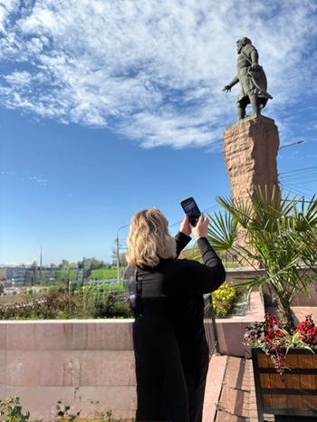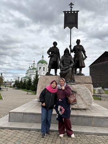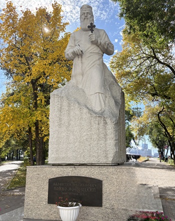 クラスノヤルスクの川岸散歩道には、エニセイ川河川駅がある。その河川駅はソ連時代の堂々とした建物の一つだ。正面は中心街の一つの広い道路の突き当たりにあって、スターリン時代風の尖塔がある。クラスノヤルスク市のシンボルの一つでもあった。建物の2階には、クラスノヤルスクで当時最も有名なレストランの1つが営業していた。しかし、私が、1990年代に見たときは古びた(うすよごれた)建物だった。正面から見てもひと気がなく、乗船客がチケットを買ったり出航まで待ったりする様子は見えなかった。正面の反対側、乗船のために出る川岸側から見ても、河川駅は荒れた感じだった。だが、川岸を散歩する人は多かった。私も、かつてクラスノヤルスクに住んでいたときはよく散歩していた。飲み物など売っている屋台もあった。屋台のような小屋の一つでエニセイ川航行の船のチケットを売っていた。 今はエニセイ川が市内を流れる範囲ぐらいの近郊の遊覧船(観光ガイド付き遊覧船か)のチケットが売られているようだ。平日でも2000ルーブル、休日なら25000ルーブルで、第4船着き場(船付き場は7カ所はある)から出ている。私たちは、あまりに短すぎるからと乗らないことに決めた。順番も長かったからだ。 帰国後ネットで調べたことだが、2025年は2隻の客船(荷物もちの乗客が多い)がクラスノヤルスク河川駅からエニセイ川下のドゥジンカまで航行している。下りは3日と14時間、上りは5日と8時間かかる。エニセイ川が凍結する冬場は運行していない。2025年度の初出航は6月11日で、最終船はクラスノヤルスクを10月3日に出て帰りの乗客は10月16日の20時に戻ってくる。運賃は普通のカテゴリーでも1万から2万ルーブルはする。 私たちが散歩していた日には2隻のうちの1隻が長期航行用船着き場7に舫っていた。 川岸通りには河川駅の隣に立派で近代的な建物が建っていた。国立センター『ロシア』Национальний центр «РОССИЯ»のクラスノヤルスク支部の入っている建物だ。かつてこの辺に何があったか忘れたが、今は『ガレリア エニセイ』、『ロシア・エニセイ』と書かれ、大がかりに改装された大きな長い建物があって、そこに前記のように国立センター『ロシア』が設立されたそうだ。完全に完成するのは年末だが、リューダさんと入ってみた。展示会のすべてのエリアはインタラクティブになっているそうだ。ハイテクだ。 帰国後調べたウェブによると 『総面積は 40,000平方メートル以上 で、地域最大級の文化施設。もすくわにあるz『全ロシア博覧センターВДНХ』の支部か。 目的とコンセプト; ロシア各地の文化的独自性を保存・発信する国家プロジェクトの一環。 地域ブランドや成果を紹介する 常設展示・イベント拠点 。 主なゾーン • 常設展示:クラスノヤルスク地方の歴史、自然、産業、文化、社会的成果などを紹介。 • グルメエリア:地元生産者やロシア各地の食品ブランドによる飲食スペース。 • ユニバーサルショップ:ロシア企業の商品を販売。 • 映画館「シネマ・パーク」:9つのシアター、ロビー、カフェテリアを備えた複合施設』とあった。 確かにハイテクだった。ヴァーチャルでクラスノヤルスク岩山公園にも登れる。クラスノヤルスクの様々な観光スポットを背景に自分の写真を撮り、QRコードを通じて自分の写真のライブラリーに入ってくる。 川岸通りの散歩にも疲れたので、せっかく有料駐車場に止めたのに、取り出して川下の方へ行った。フィルハーモニーホールの横を通り過ぎて坂を上ってゆくと、国立クラスノヤルスク医科大学の建物がある。ソ連時代風の正面だ。21世紀も25年も過ぎたからと言って、ソ連時代を思わせる建物も残っていた方がいい。内部も、新しそうではない。『大主教ルカ(ヴォイコ・ヤセネツキィ教授)名称クラスノヤルスク国立医科大学,Красноярский государственный медицинский университет имени профессора В. Ф. Войно-Ясенецкого』と正式名称では言う もしかして見学させてもらえないだろうか、日本の医学部に学んでいる学生が来ているのだけど、とリューダさんは受付で聞いてみたが断られた。ロシアでは大抵のところの入り口には遮断機があって、外部の者は入れない。連邦大学には入れたのはコネの紹介者がいたからだ。遮断機の外側の玄関で出てくる学生を見ていた。 白衣を着たまま出てくる学生もいた。日本なら、のりのきいた真っ白の白衣だが、薄汚れた白衣だったので、内部の施設はどうなっているのだろうと思ってしまった。ロシア人女性は長い爪のマニキュアが好きらしいが、医療関係者には全くそぐわない。そんな女性も出てきた。 私たちは仕方がないので、医科大のソ連風の建物の正面や、大学の名称ともなった大主教ルカの像の前で何枚かの写真を撮って、車は不法駐車させたまま、カーチャ川がエニセイに合流する場所を見晴らす高台に行った。その展望台には、クラスノヤルスクの