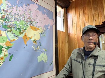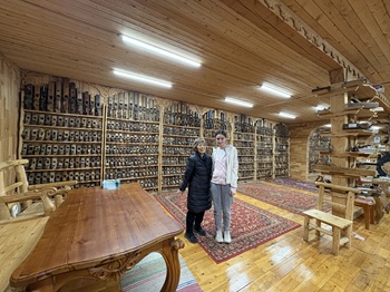 川岸のカフェなので窓からエニセイが一望できる。食後は川岸に出る。ここには2年前来たときに『エニセイスクの創立者(*)』の3人の像ができていた。ソ連時代のロシア人(官僚)の好みは指導者レーニン像を造ること、今は各都市の創立者の像を造ることかな。シベリアの町を作ったのはシベリア征服コサック兵団でその隊長や、同行してきたロシア正教の僧侶、征服を命令した当時の権力者などが関係していた。だから、そのような17世紀風の服装の像が町の始点だったというところなどに21世紀になってから立ち始めている。 *エニセイスクの創立者像 その創設をになったのは貴族の息子Пётр Албычевと兵の小隊長 Черкас Рукинと修道士 Тимофейが創設者とされている。2017年に設置 コサック兵は当時北西から川伝い(支流から別の川の支流へと)に来たので,町の始点は川岸だ。エニセイスク市はシベリアの父と呼ばれている。それは1619年という早い時期にコサックの柵が作られて、ここからその先の南や南東や東にコサック兵団が進出したからだ。また、エニセイスク市はクラスノヤルスクよりずっと早くに人口が増え、勿論教会もふえた。18世紀からの立派な石造り教会がたくさんある。ここ10年20年の間にみんな立派に改装された。川岸広場にあるボゴヤブレンスカヤ・サボールБогоявленская собор(主顕節大聖堂、1730-1750)もそうだ。頭にショールを巻いてみんなで入る。彼女は自分以外の信仰習慣のない3人のためにちゃんとショールを用意してくれていた。 次にリューダさんが車を止めたのはウスペンスカヤ教会の建造物群ансамбль Успенской церкви(1793-1819)(聖母被昇天教会建築群。ウスペンスカヤは聖神女就寝)だ。 もう5時になっていたが『カンナ博物館』の前で車を止めた。リューダさんはここへ行きたかったのだろうか。『カンナのコレクションというのはロシア中で、もしかして世界中でここしかないかも知れない』と、エニセイスク市の数年前発行された旅行案内書に載っている。ここのオーナーヴィタリー・イスレンチエフВиталий Ислентьевさんも入場者の私たちに最初にそう言っていた。 その博物館の入口ホールには大きな世界地図が貼ってあって来館者はそこに自分たちの来た都市の名を書いて張りつけるのだ。勿論ロシア国内の名札がぎっしり貼ってある。アフリカも数カ所あったが中国は少ない。東京があった。どんな人だろう、こんなところまで来るなんて。私は漢字で金沢と書いてシールを貼った。オーナーさんは喜んでいるようだった。 この博物館は一つとして同じものはないロシア中から集めた1500以上のカンナが棚に整然と並んでいる上、斧や、私には用途のわからない大工道具がさらに並んでいる。オーナーの手作りもあるそうだ。そしてすべてのカンナ類が使用可の状態だそうだ。このホールも棚も椅子もテーブルもオーナーの手作りだろうか。 カンナ・コーナーとは別のコーナーには、オーナーの趣味で集めた古いレコードのジャケットや古いアコーディオンが並んでいて、手回しポータブル蓄音機まである。オーナーにとってこちらのコレクターの方が愛しそうだった。テーブルにはオーナーの自叙伝の冊子が積んであり、リューダさんが購入していた。 クラスノヤルスクへの帰りの道を走っていたのはもう6時。家までの道のりはこの日長くて暗かった。助手席に座っている私は眠ってはいけない。運転手と話をしなくては。帰宅したのは10時も過ぎていた。 |