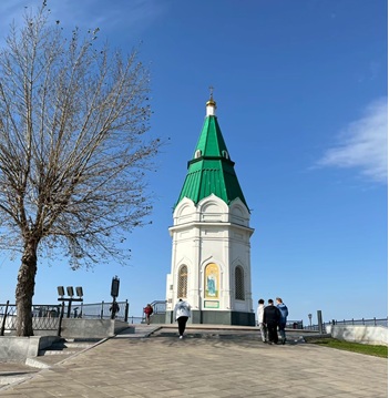 この日は、夕方クラスノヤルスクを去る。リューダさんはぎりぎりまで私たちの相手をしてくれた。朝は9時半に、マヤーク丘の別荘から丘の下のアカデミガラドク地区のマンションまで来て、ドアの鍵を開けてくれる。 マンションの隣は軍事教育センターだ。こちらも勿論2年前より拡大している。2年前には外壁に『特別軍事作戦』で戦死した卒業生の写真と業績を示したプレートがあったので、軍事技術高等専門学校かと思っていた。2年間で勿論死者は増えている。別のところに墓銘があった。展示品は、地対空ミサイルシステムなどがふえている。それだけでなく学校の背後の2年前は藪だったところが、学校生徒(と思った)が行進練習(たぶん)をするような広場になっている。使ってないときは一般市民もそこで休める。片隅には屋根付きのチェス・サロンができている。つまりチェス盤のテーブルと椅子のセットがいくつも並んでいる。ロシアの映画に出てくるような、町中や広場で町の人たちが誰とでもチェスを楽しめるようなチェス・サロン、無料貸席だ。 帰国後、この学校について調べてみた。この軍事教育・訓練センターというのは昨日のシベリア連邦大学の中の一つの単科大学のそのまた一部だ。 つまりシベリア連邦大学(総合大学)にはインスティツィート(単科大学、だが、『学部』と取った方がわかりやすい)が、23(学部)ある。人文や工学、建築、有色金属、経済、環境、教育、石油・ガスなどなどで、最重要なのが軍事・技術単科大学(学部)だ。その下に5個の下部組織があって、その第1が、私たちが見ている『Военный учебный центр им. Героя Российской Федерации генерала армии Дубынина Виктора Петровичаロシア連邦の英雄である陸軍大将ヴィクトル・ペトロヴィチ・ドゥビンニンに因んで名付けられた軍事訓練センター』だ。そのセンターには軍事教室・講座(軍事学科Военная кафедра、軍事訓練プログラム)が8講座あって、この建物にはそのうち4講座が入っている。シベリア連邦大学には昨日訪れた本部の他、実に多くの棟があるのだ。 ロシアでは徴兵制があって、18歳から30歳の男性は12ヶ月の兵役義務があって、毎年春と秋に平時徴兵される。しかし大学在学中は徴兵が猶予される。多くの大学には、シベリア連邦大学のように軍事学科(軍事教育・訓練部門)があり、学生が通常の学業と並行して一定期間訓練を受けることができる。。この訓練を終了すると、卒業時に予備役士官запасной офицерに登録され、通常の兵役義務を免除される。つまりロシアでは大学教育と結びついて『徴兵免除の代替えルート』として機能している。 無料貸席チェス・サロンを通り過ぎて、アカデミガラドク区を通り、それから近くの崖上の新しい教会に行く。鐘を鳴らしていたからだ。八端十字架をつけた金色のドーム(タマネギ型)が6個もあるロシア正教の典型のような教会だ。2001年に建設が始まったそうだ。『ロシアの新殉教者たちおよび告白者たちの教会 Храм Новомучеников и Исповедников Российских』という。 教会の横の崖上ぎりぎり(マンションのあるアカデミガラドク地区はエニセイ川の崖上にある)のところには、リオ・ネジャネイロにあるような、両手を広げたキリスト像がある。キリストは崖下を背にして立っている。つまり、崖上の高台で自分のところに近づく人々を迎えるように。 この絶壁上からのエニセイ川の眺めも素晴らしいのだ。翼があったら飛びたいくらいだ、とクラスノヤルスク人は言っている。 |