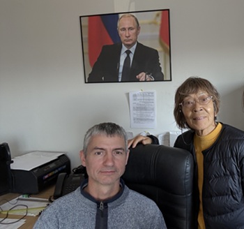 前日に約束したとおり9時半にはディーマさんがマンションにやってきた。ディーマさんが来たと言うことは夫婦で交代して案内してくれるのかな。 ウラル山脈より東では最も大きいロシア国旗がはためいているニコラエフスカ丘(標高505m)の見晴台に行った。2年前にクラスノヤルスクに来たときもこの硬化ガラス張りの見晴台はできていたが、旗はなく旗竿だけだった。それは、この高さ(100m)でこの重さ(33x22m、84kg)の旗をこの風に当てるとすぐにボロボロになり、あげるのも下ろすのも大変で破れても修理が難しいというので、国旗はなかったが、今回はあった。プーチン政権下のクラスノヤルスク地方庁政府は、国旗を丈夫な材質にして揚げておくべきと判断したかのようだ。下からじっと見つめていると国旗ごと旗竿がゆっくり倒れてきそうだった。本当は雲が動いているのだ。 11時にはクラスノヤルスクの一番の名所、市の象徴にもなっているカラウルナヤ丘(Karaulnaya Hill)の『パラスケヴァ・ピャトニツァ礼拝堂часовня Параскевы Пятницы』にいた。クラスノヤルスクに来た以上はここへ来なくてはならない。10ルーブル紙幣にも印刷されている。観光バスも止まっている。クラスノヤルスクの中心が見晴らせる。元々はコサックの見張り(カラウリ)塔だったのだろう。この辺りは先住民のカーチンスキィー・タタール(ハカシア人やエニセイ・キルギスと呼ばれていたテュルク系の人々)の居住地だったからだ。 ディーマさんの会社にも行ってみたい。何年も前には町中にあったが、今は郊外の広い敷地内に事務所や修理棟、広大な部品置き場を構えている。事務所前の広場には日本から購入したばかりらしい車が置いてある。修理棟にはリフトが何台もある。天井にはハニカムで明かりがついている。修理用道具は日本の根本氏からの遺品だそうだ。オフィス棟は1階が顧客受付の窓口(店)になっていて、2階に事務室や社長室、応接室などがある。社長室にはプーチンの写真があった。応接間には日本のお土産や中国のものが並んでいる。会社名が『ヴォストーチヌィ(東方の)・テルミナール』だから、日本も中国も含む。中国車や中国車部品は売ってないが、ディーマさんには中国通の親友がいて、度々自身も中国に行っている。実はその親友が20年前、私にディーマさんを紹介したのだ。日本の中古車との取引が成功してから、彼の会社は大きくなったと思う。 2階にはこの会社の技術者のための特別制服もあって、孫娘は試着させられていた。中国茶もごちそうになる。部品用倉庫に行ってみる。強化プラスチックで半円形に建てられた2階建ての長屋だ。遠くまで棚があってすべてに番号がついている。どんな部品がどこにあるか、すべて、コンピューターに入っていてすぐ見つけ出せるのだろう。 彼の会社を出て、3人でロビンソンというカフェに入った。これは彼の昔の会社の近くにあり、私がかつてクラスノヤルスクへ行った時にはよく入ったところだ。 2時にはシベリア連邦大学の前にいた。ここで私たちのお相手はディーマさんからリューダさんに変わる。かつて私が日本語を教えていた頃はクラスノヤルスク国立総合大学と言った。高等教育制度の改革があって、国立大学は東シベリアでも格が上がって連邦立となった。新築の棟がたくさん建った。私たちが2時に着いたのは旧校舎前だが、外観は新しくなり、大学図書館が入っているようだ。 私たちがクラスノヤルスクに到着した日に孫娘がそんな格上になった連邦大学を見たいと言ったのだ。彼女の大学は、学部は難関でも、地方大学だ。外部の者が大学に入るのは難しいが、リューダさんは友達とコネを使って、日本の大学から来た学生が連邦大学の見学をしたいからと、大学に入る許可をもらったらしい。正確には、大学の玄関で迎えてくれた大学職員が案内するというものだ。男性が迎えてくれた。後でわかったことだが、彼は副学長の一人だった。リューダさんの発信から何人もの人を通したおかげで、日本の大学生が、この大学に留学したいので下見に来たと伝わっていたのかも知れない。 医学部(医科大学)は別にあるので、私たちが案内されたのは生物学の学部長室だった。その学部長は長々と英語で話をしていて、正面に座った孫娘は神妙に拝聴していた。となりのアリーナは英語がわかるはずだが、生物学には興味はないだろう、その隣に座った私とリューダさんは英語がわからず、死ぬほど退屈だった。学部長と孫娘が英語で対話したわけではない。学部長が母国語ではない英語で一方的にしゃべり、私たちは聞いているだけだった。 やっと終わって、案内された次の部屋は実験室だった。そこの職員は私たちの誰を相手に何を話せばよいかわからないようだった。私に話そうとしたので、「私は英語はわからない」とロシア語で答えた。年配の研究者が来たと思ったのかな。 実は、建物の外観は変わったが、内部は私が何十年も前にい