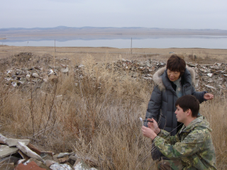 | 11月3日(水)、14歳になった次女ヴァーリャのためのパスポート申請が終わったマリーナも、この日は同行することになった。ガイドは一昨日訪れたチェルノゴルスク博物館推薦のヴァロージャだった。マリーナが知り合いの館長に頼んで紹介してもらったのだ。ヴァロージャはアバカン大学歴史科を卒業して博物館のパートの研究員だが、(パートでも正規でも)給料が安すぎるので、祖母がアイラン(飲むヨーグルト)を作っているのを手伝っているとか。 前々日にヴァロージャに電話すると、ガイドはやったことはないが、学生時代に考古学発掘の実習があったので、案内できる場所もある、と言うことだった。ハカシア南部はベヤ村を中心に回るから、チェルノゴルスク市に来ている時は北部を回りたい。北部でも白イユース川ほとりは、昨日スラーヴァと回ったので黒イユース川を回りたい。それで、黒イユース川方面の、例えばチェバキ村のスベを見たいと言った。あまり自信はなさそうだったが、黒イユース方面案内を引き受けてくれた。マリーナがガイド料はいくらと聞くと、「1000ルーブルもらえたらいいのだが」と言われたそうだ。