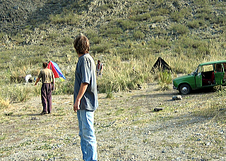 少年が無言なのはロシア語を知らないかららしい。男性のロシア語もひどいものだった。「贈り物をくれ」という。贈り物、贈り物と繰り返す。ディーマに何か適当なものがあるかと聞いたところ、アルカージーがタバコを1カートン出してくれた。1カートンでなくても、2、3箱でいいではないかとけちな私。しかし、ここは1カートンでなければならないそうだ。満足したトゥヴァ人男性は、私を抱きしめそうになったが容赦してもらう。代わりにポケットから古びた飴玉を1粒出して私にくれた。ディーマには、自分のユルタがこの丘の向こうのすぐ近くにあるから行こう、地酒を一杯ご馳走する、などと言っていた。ちなみに彼はこのランクルが気に入って、羊30頭と交換してくれと申し出たそうだ。ユルタや家財道具を運ぶにはランクルは小さいから、レジャー用かな。この人この場所ではミスマッチだが。