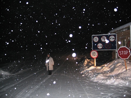 さらに33キロ北上したところが、1642年から岩塩の産地として知られているウソルカ川畔のトロイツク村です。1650年から20年間、エニセイ流域で最も古いトゥルハンスク村(1601年建設)のトロイツキィ(三位一体)修道院領となっていました。その後、国領(帝室領)となったのですが、トロイツク(という修道院名から)岩塩産地の名前は残りました。17,18世紀はロシアで最大の塩産地でした。今でもその産業は続いています。 ここで、カンスクからの由緒あるタセエフスキー街道は終わります。後はひたすら狭い林道をタセエヴァ川の方へと北上します。雪は深く、すれ違う車もなく、あたりは暗闇です。途中、無人となったスレドニィ(中間と言う意味)村も通り過ぎました。なぜ『中間』村というのかというと、タセエフスキー街道の終点トロイツク村からタセエヴァ川に出るまで60キロほどのウソルカ川に沿った林道の中間にあるからだそうです。